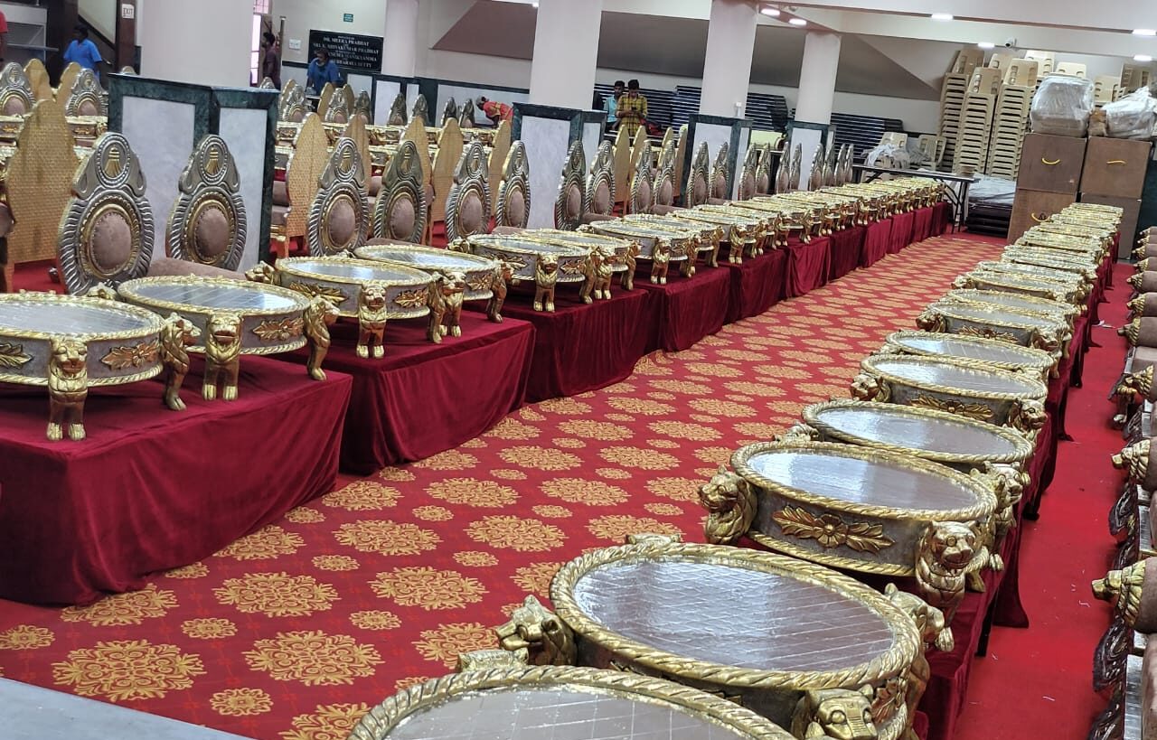 Hire of Shamiana, Pipe pendal, Pagoda structure, Tables, Furniture, Vessels & Kitchen Equipments for all occasions.